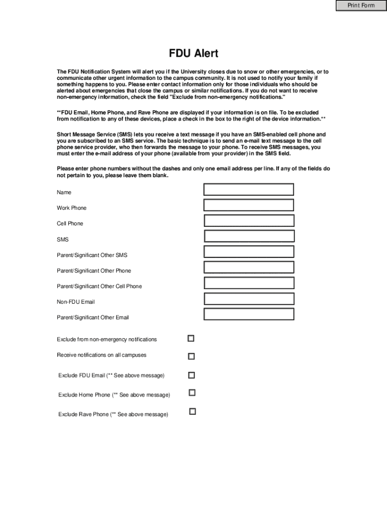 Fill out your fdu alert form online with pdfFiller!