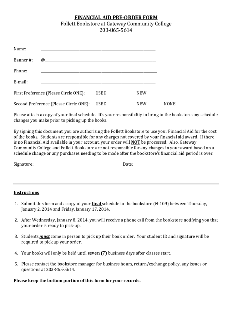 Get the free FINANCIAL AID PRE-ORDER FORM Follett Bookstore at ...