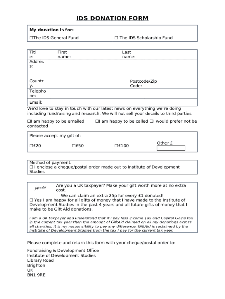 The IDS DONATION is a document that has to be filled-out and signed for certain reasons. In that case, it is furnished to the relevant addressee in order to provide certain details and data. The completion and signing is possible in hard copy or using an appropriate tool e. g. PDFfiller. These tools help to submit any PDF or Word file without printing out. While doing that, you can edit it for your needs and put legit e-signature. Once finished, the user sends the IDS DONATION to the respective recipient or several recipients by mail and even fax. PDFfiller provides a feature and options that make your blank printable. It includes different settings when printing out appearance. It doesn't matter how you will send a form - physically or electronically - it will always look well-designed and firm. In order not to create a new writable document from scratch all the time, make the original file into a template. After that, you will have an editable sample.