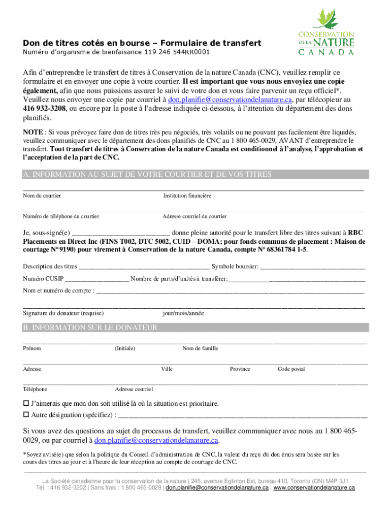 Comment remplir cnc don de titres