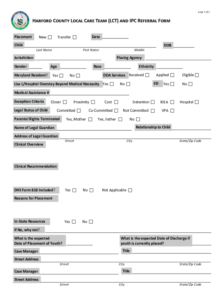Harford County Local Care Team (LCT) and IPC Referral Form Instructions for Submitting the Referral Form to the Local Care Team 1. 2. 3. 4. Download the blank form from the Interagency Case Management