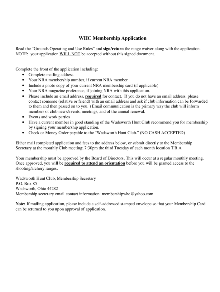 WHO Membership Application Read the Grounds Operating and Use Rules and sign/return the range waiver along with the application. NOTE: your application WILL NOT be accepted without this signed document.