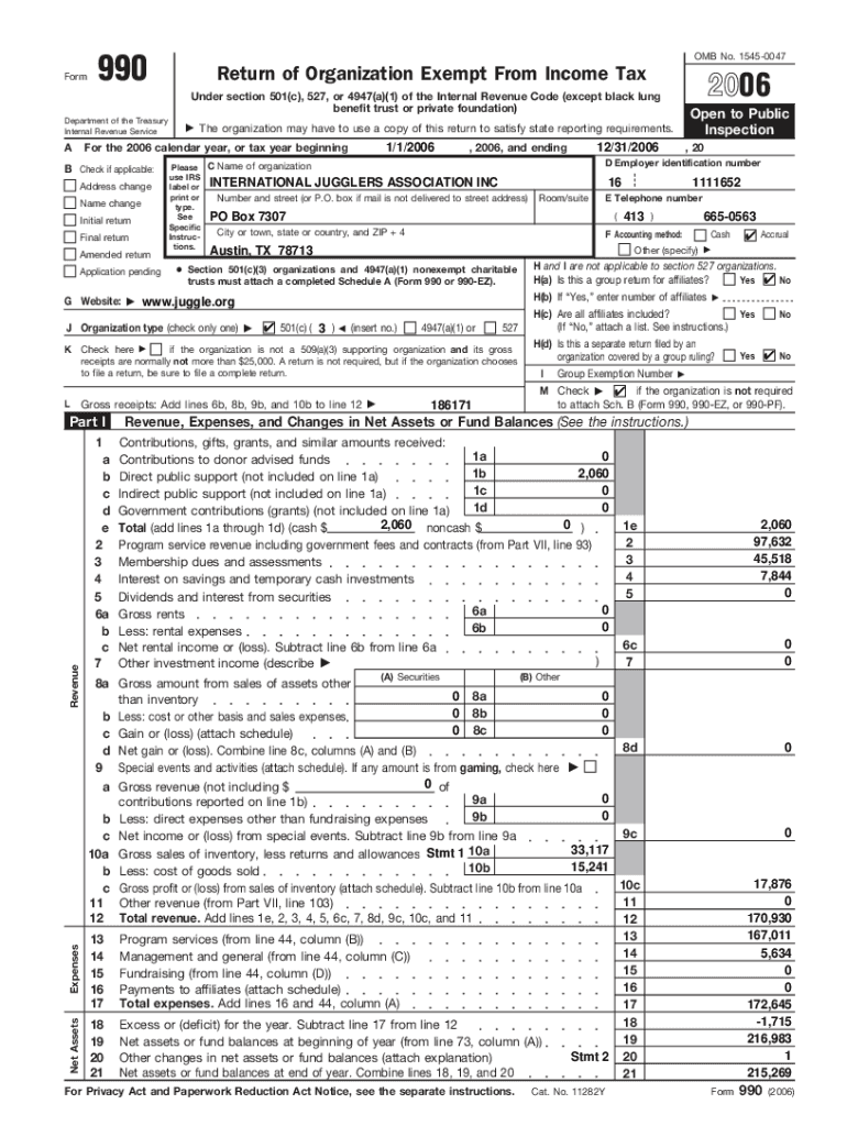 Form OMB No. 15450047990Return of Organization Exempt From Income Tax2006Under section 501(c), 527, or 4947(a)(1) of the Internal Revenue Code (except black lung