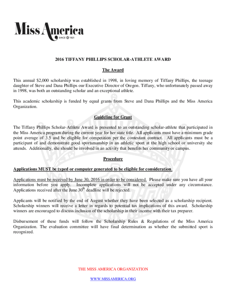 2016 TIFFANY PHILLIPS SCHOLARATHLETE AWARD