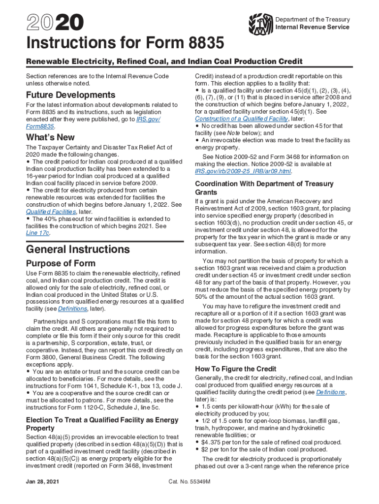 2020Instructions for Form 8835Department of the Treasury