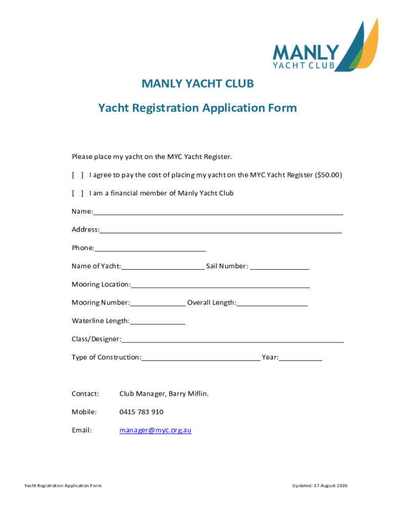 Get the free Yacht Registration Form.docx - myc org