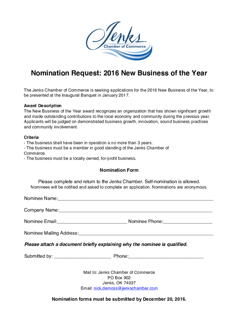 Get the free New Business of the Year Nomination Form.docx