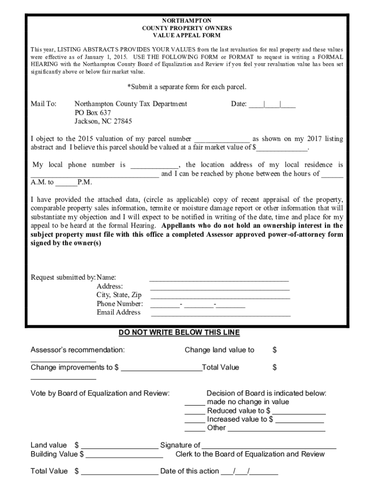 Get the free NORTHAMPTON COUNTY COMMERCIAL ASSESSMENT APPEAL