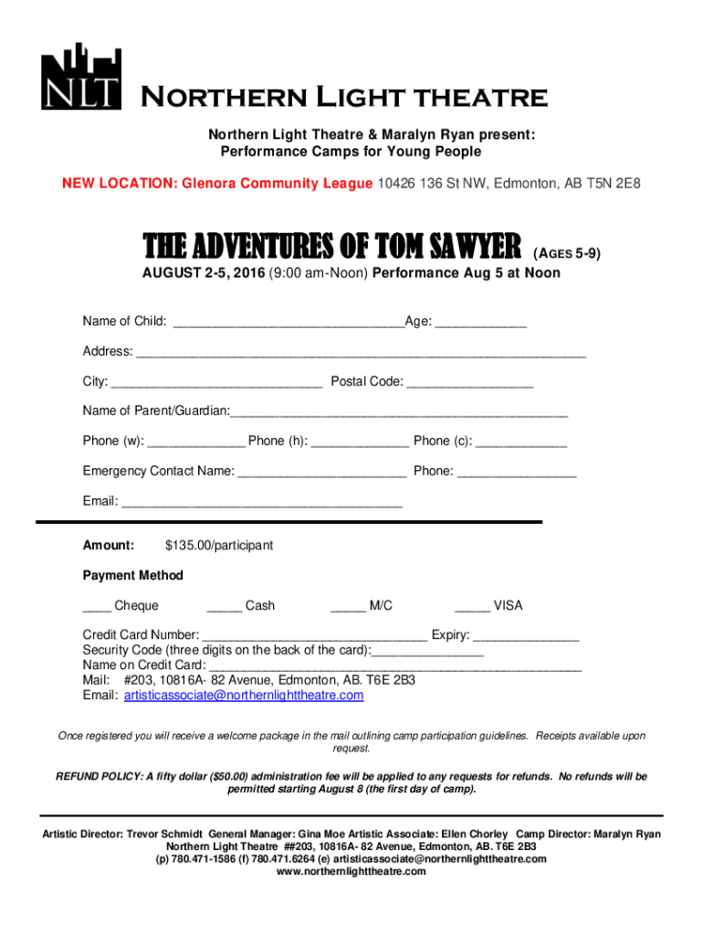 Northern Light theater Northern Light Theater & Marilyn Ryan present: Performance Camps for Young People NEW LOCATION: Lenora Community League 10426 136 St NW, Edmonton, AB T5N 2E8THE ADVENTURES OF
