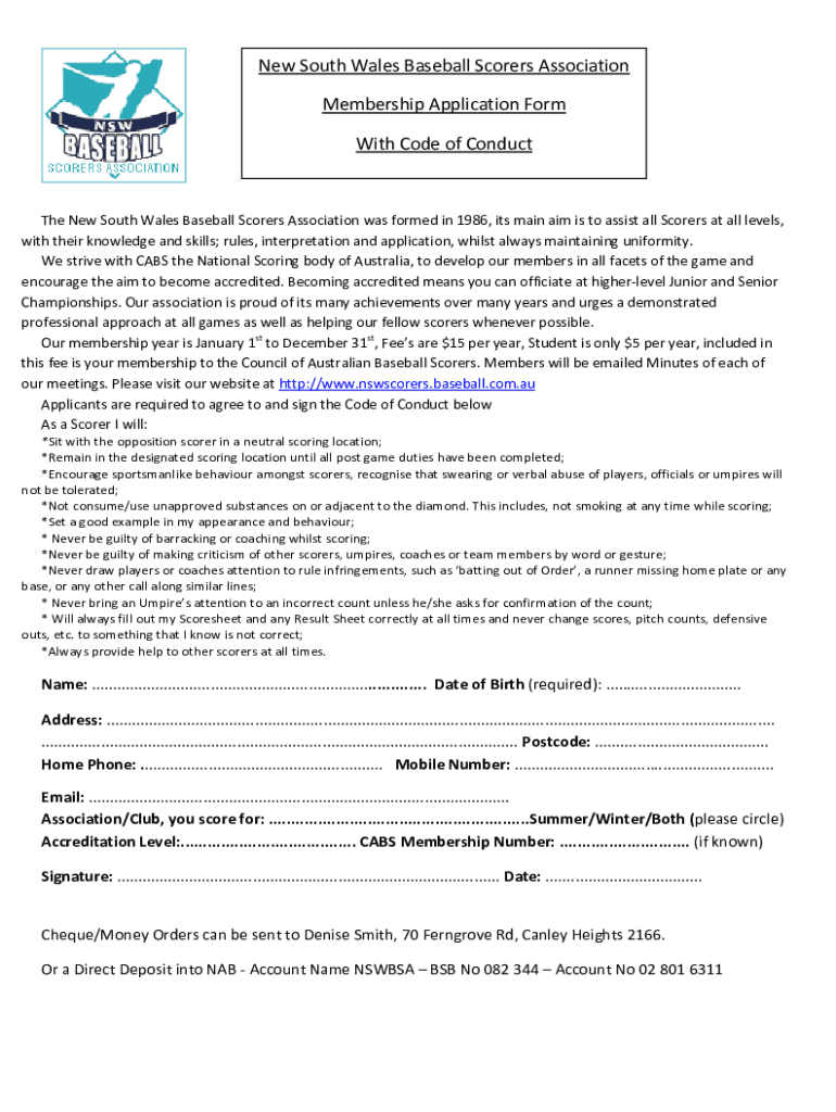 With Code of Conductive New South Wales Baseball Scorers Association was formed in 1986, its main aim is to assist all Scorers