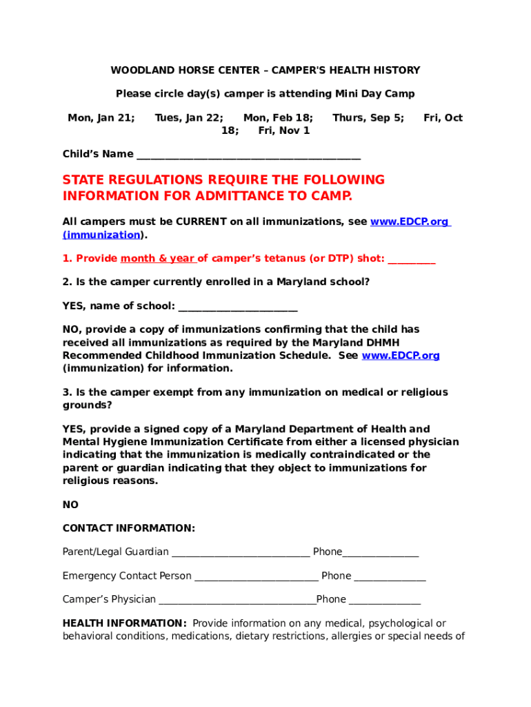Frequently asked questions about the form Holiday Camp at Woodland Horse Center - Great Outdoor Fun!