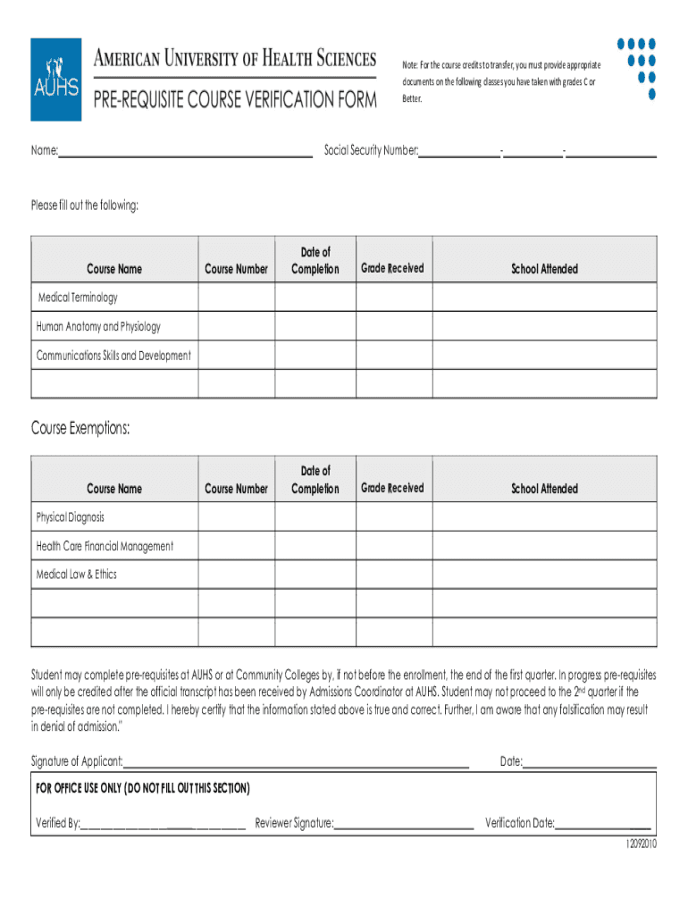 Get the free Note: For the course credits to transfer, you must provide appropriate