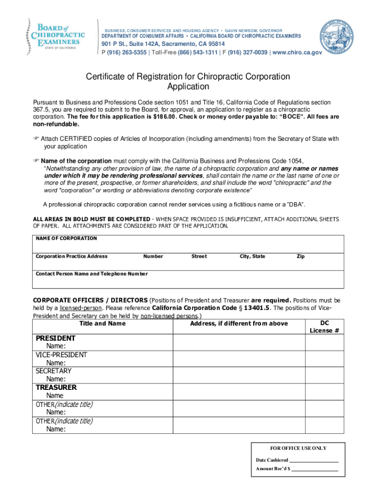 Get the free Certificate of Registration for Chiropractic Corporation Application. Board of Chiro...