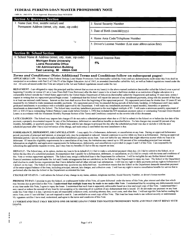 Get the free Federal Perkins Loan Master Promissory Note