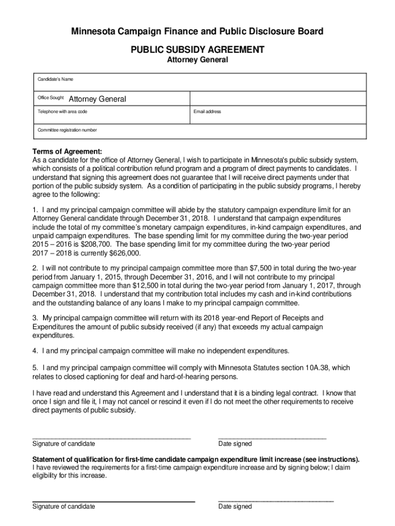 Get the free As a candidate for the office of Attorney General, I wish to participate in Minnesot...