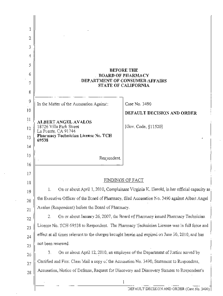 45BEFORE DEBOARD OF PHARMACY DEP ART MEN\'TOF CQNSUMERAFFAIRSST ATE OF CALIFORNIA6