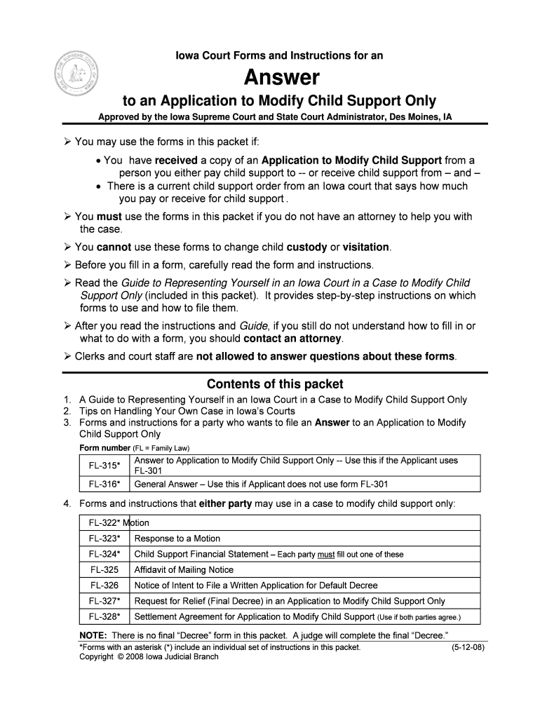 Who Needs the Iowa Answer to Application to Modify Child Support Only?