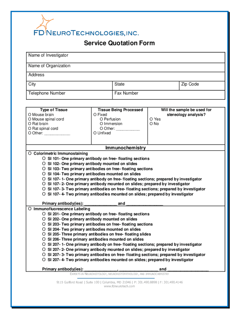 Get the free Online Service Quotation Form - FD Neurotech Fax Email ...