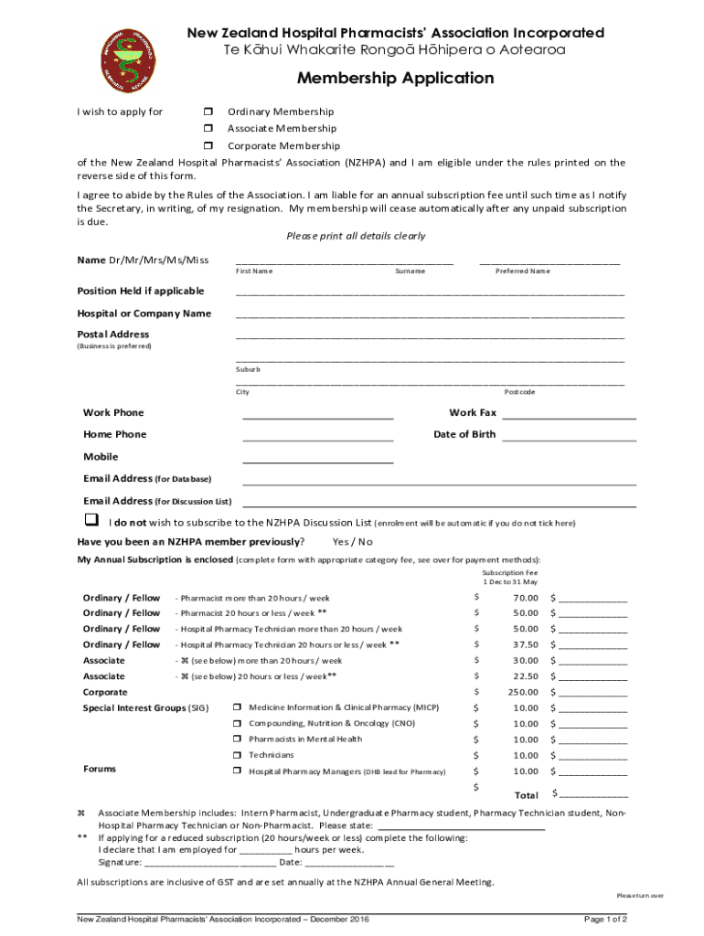 New Zealand Hospital Pharmacists is not the form you're looking for?Search for another form here.