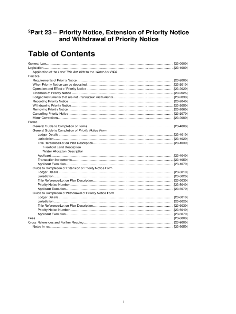 2Part23 Priority Notice, Extension of Priority Notice and Withdrawal of Priority Noticeable of Contents General Law.............................................................................................................................................