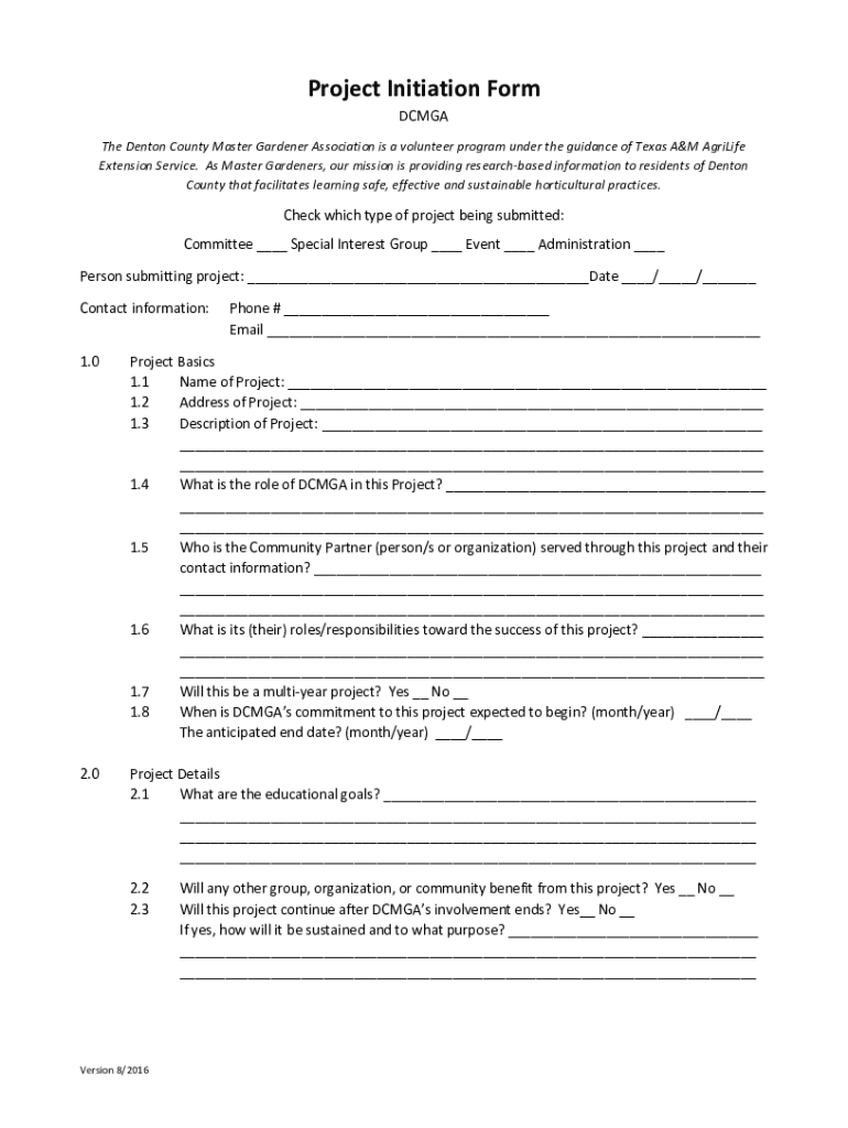Get the free Project Initiation Form - Denton County Master Gardener ...