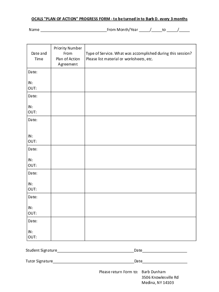 VOCALS “PLAN OF ACTION PROGRESS FORM to be turned in to Barb D. every 3 months Name From Month/Year / to / Date and TimePriority Number From Type of Service. What was accomplished during this session?