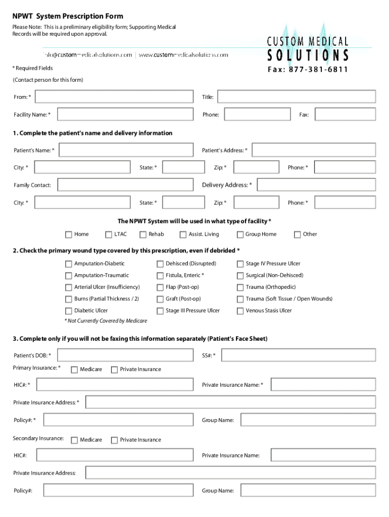 The NPWT system prescription form is needed for patients who require negative pressure wound therapy (NPWT) treatment.