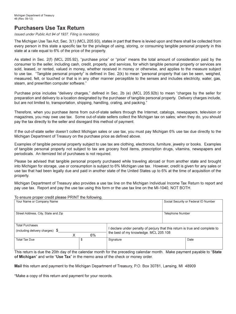 Who Needs to File the Michigan Purchasers Use Tax Return?