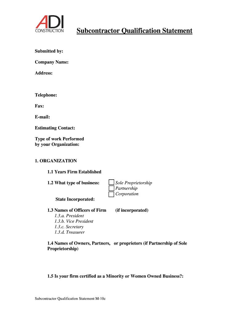 Subcontractors who want to demonstrate their qualifications for projects need to fill out this form, as well as contractors who evaluate these qualifications to make informed hiring decisions.