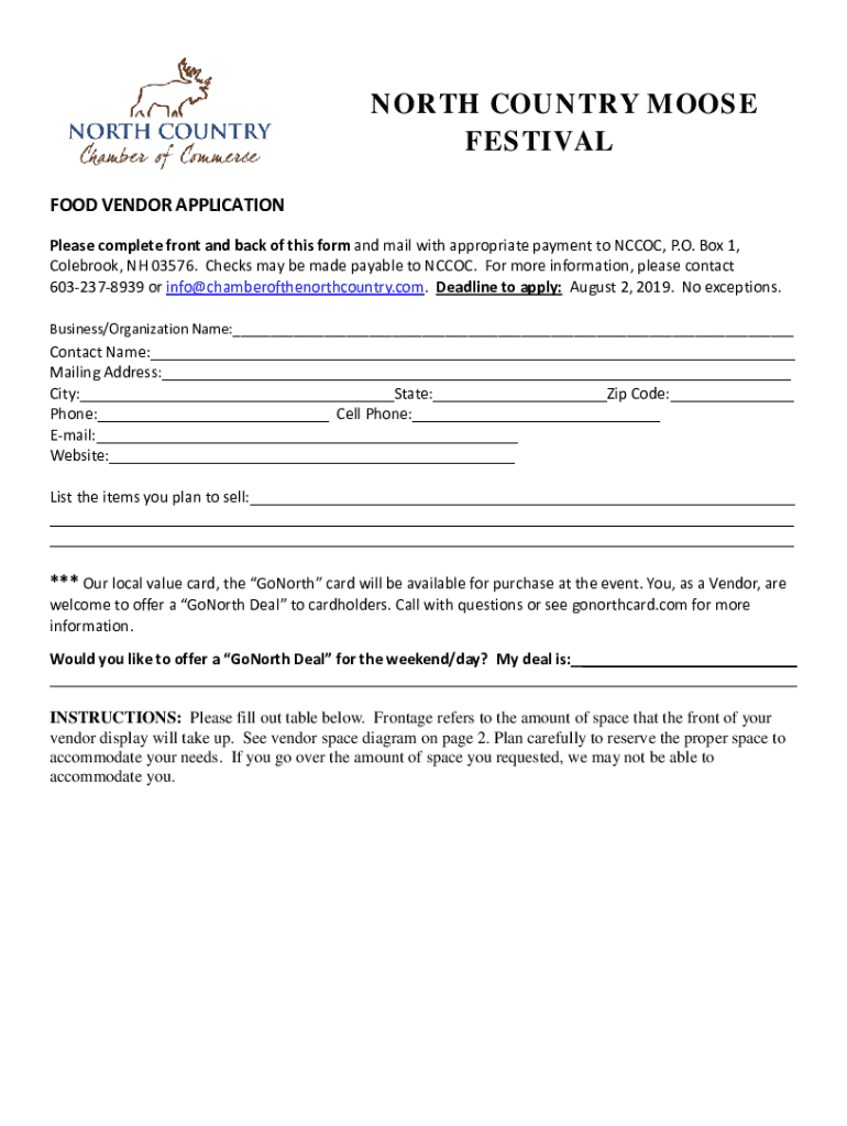 Get the free Moose Festival Vendor Information - North Country Chamber of ...