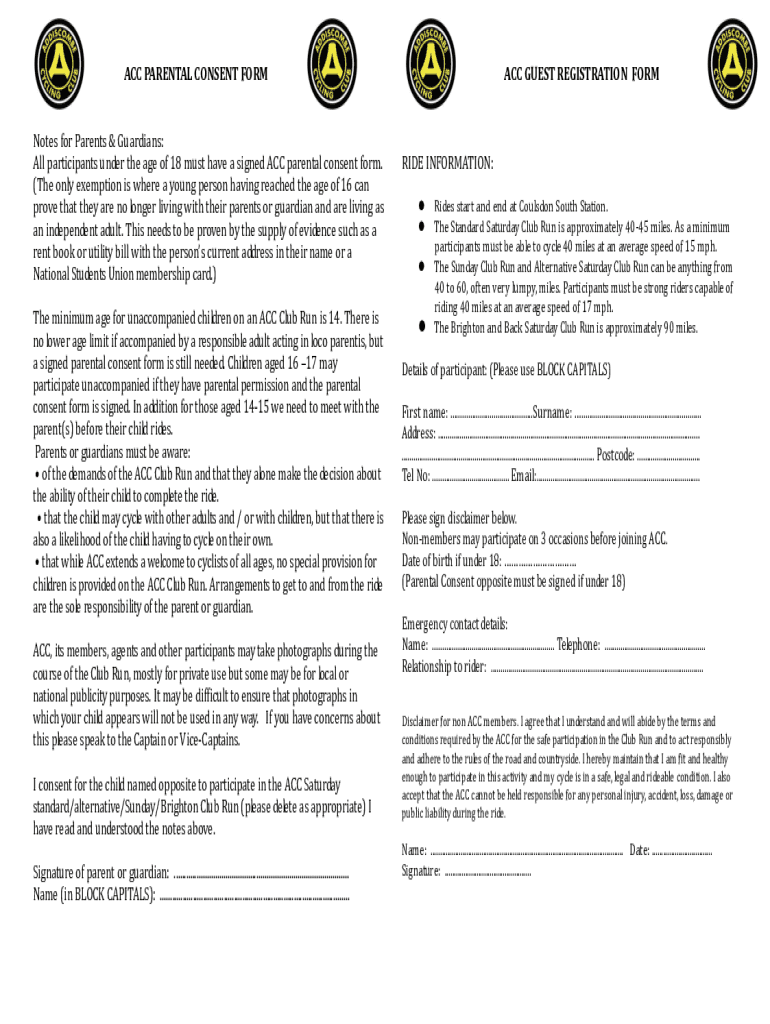ACC PARENTAL CONSENT FORM Notes for Parents & Guardians: All participants under the age of 18 must have a signed ACC parental consent form. (The only exemption is where a young person having reached