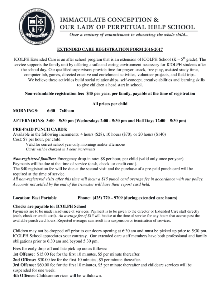 Get the free EXTENDED CARE REGISTRATION FORM 2016-2017