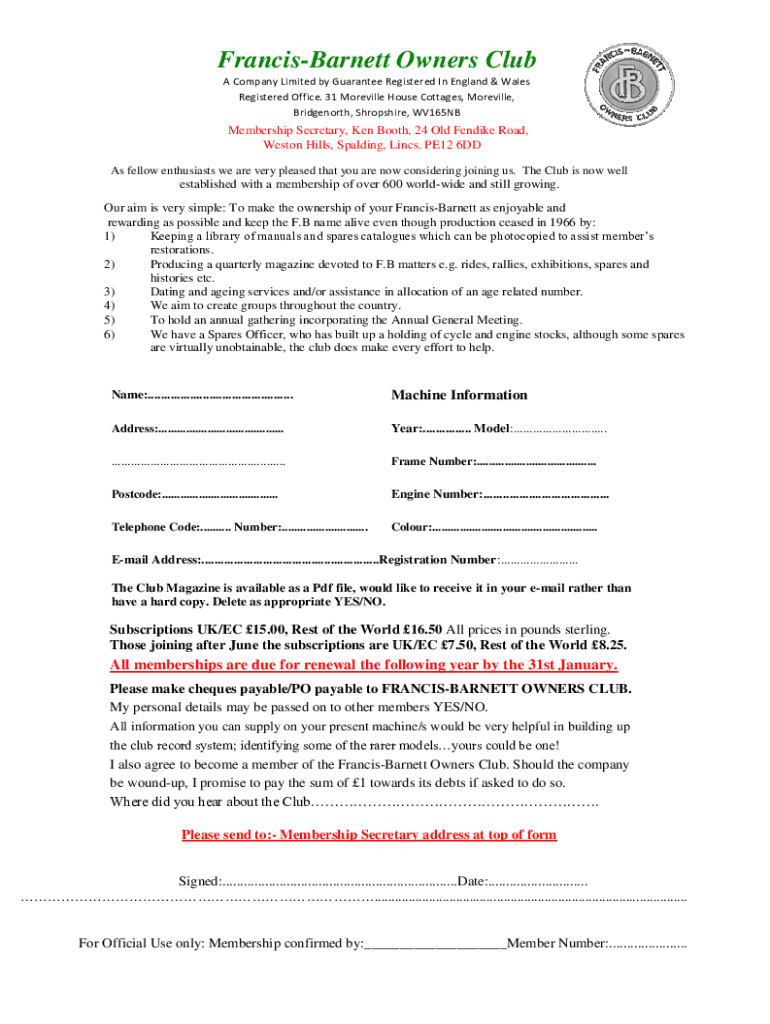 How to fill out francis-barnett owners club