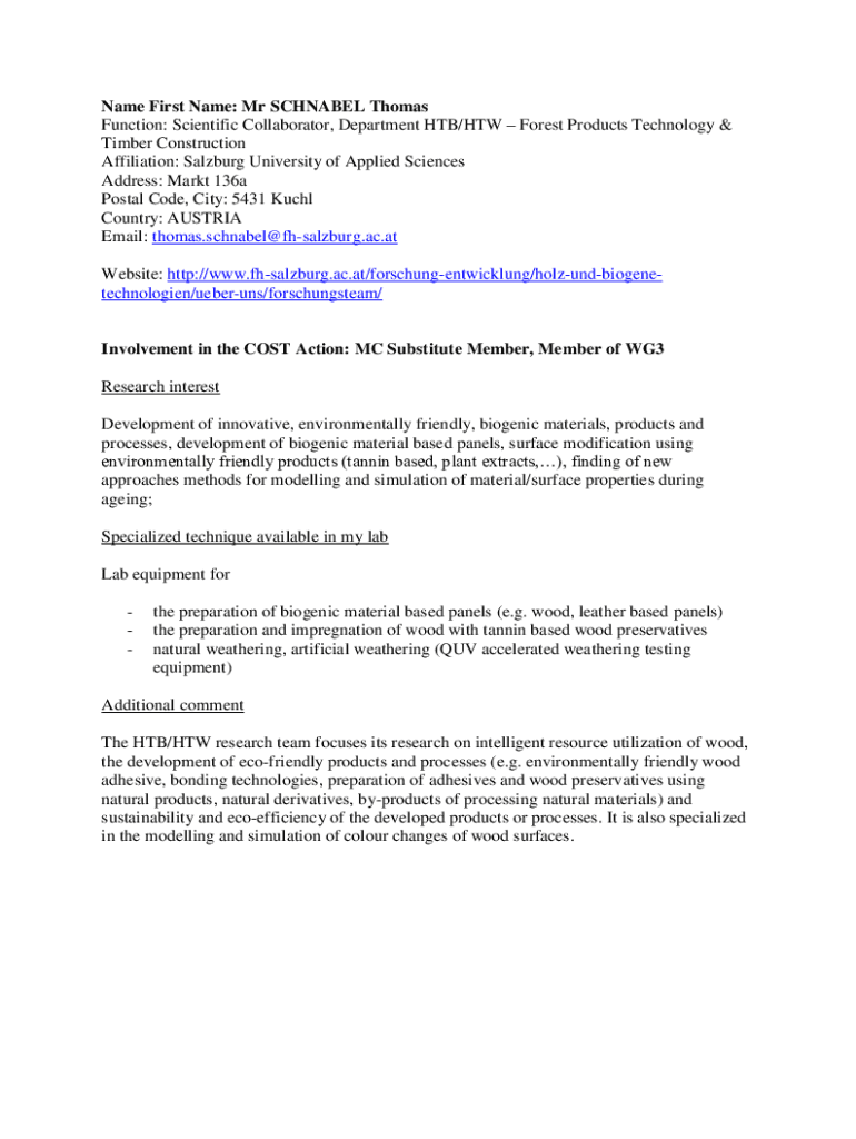 Get the free Name First Name: Mr SCHNABEL Thomas Function: Scientific ... - cost-fp1006 fh-salzbu...