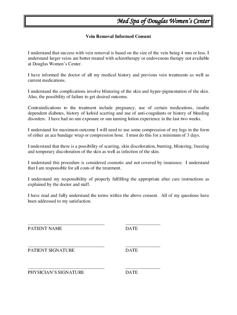 Vein Removal Informed Consent understand that success with vein removal is based on the size of the vein being 4 mm or less. I