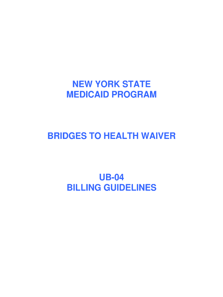 NEW YORK STATE MEDICAID PROGRAM BRIDGES TO HEALTH WAIVER UB-04 BILLING GUIDELINES Bridges to Health Waiver UB-04 Billing Guidelines TABLE OF CONTENTS Section I Purpose Statement .................................................................