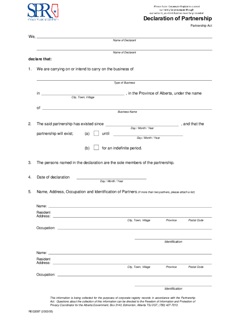 Obtain a declaration of partnership form from the relevant government agency or legal services provider.