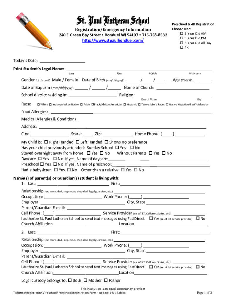 Get the free Choose One: St. Paul Lutheran School Kindergarten st Grade