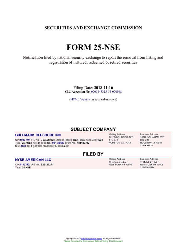 SECURITIES AND EXCHANGE COMMISSIONER 25NSE Notification filed by national security exchange to report the removal from listing and registration of matured, redeemed or retired securitiesFiling Date: