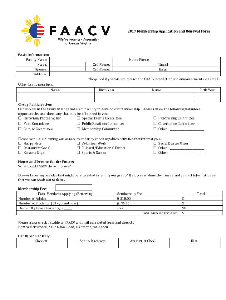 2017MembershipApplicationandRenewalFormBasicInformation: