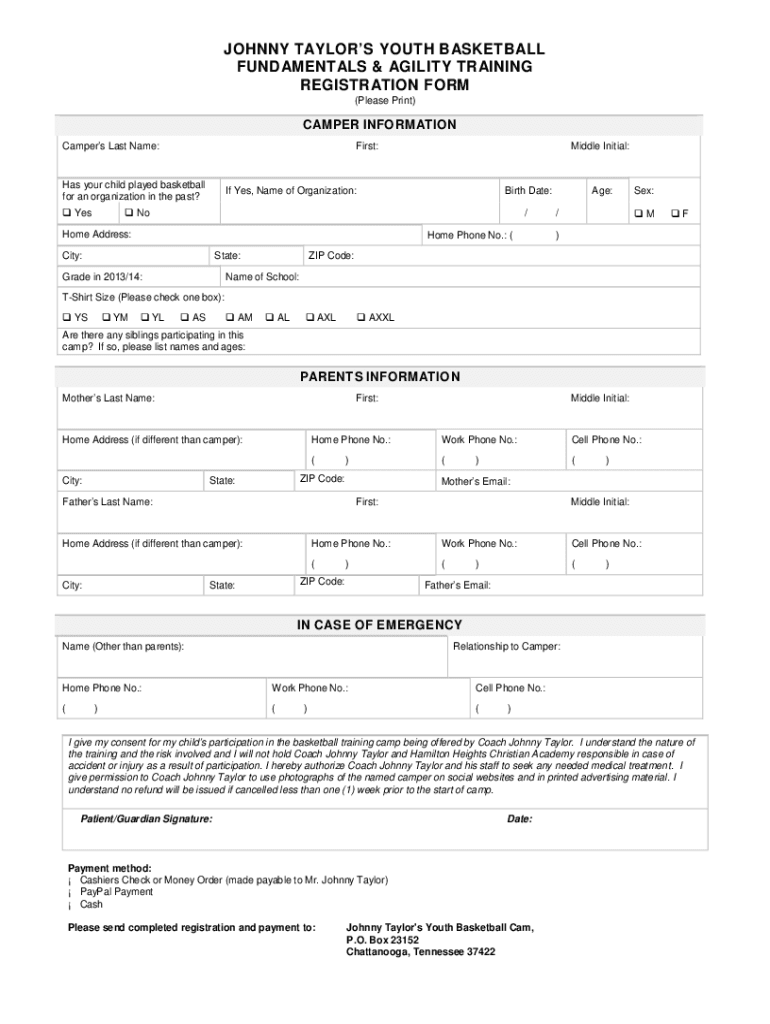 Get the free Medical office registration form. Johnny Taylors Youth Basketball Fundamentals &...