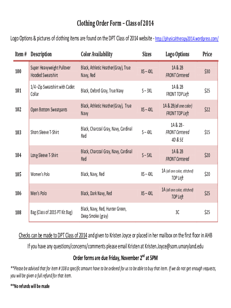 Get the free Clothing Order Form Class of 2014 - WordPress.com
