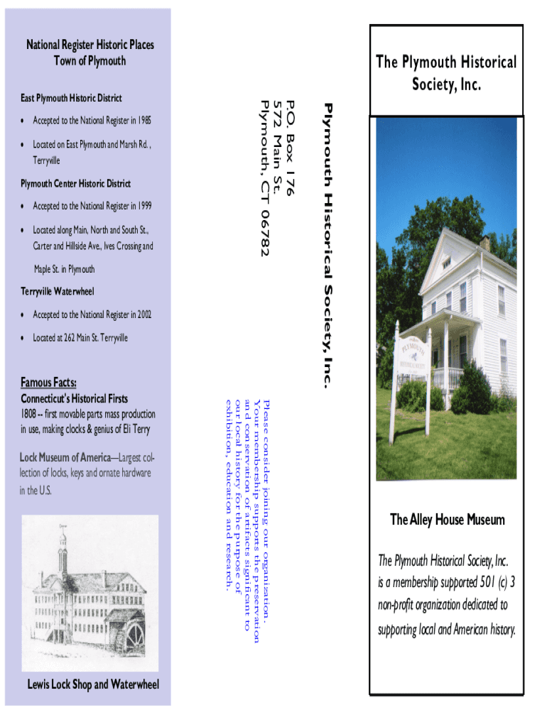 Town of PlymouthAccepted to the National Register in 1985Located on East Plymouth and Marsh Rd. ,