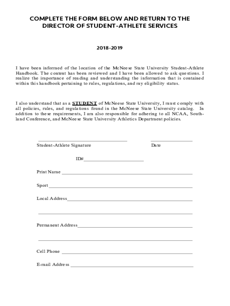 DIRECTOR OF STUDENTATHLETE SERVICES20182019I have been informed of the location of the Cheese State University StudentAthlete