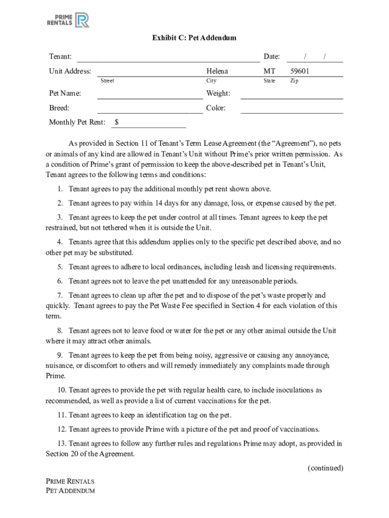 Exhibit C: Pet Addendum