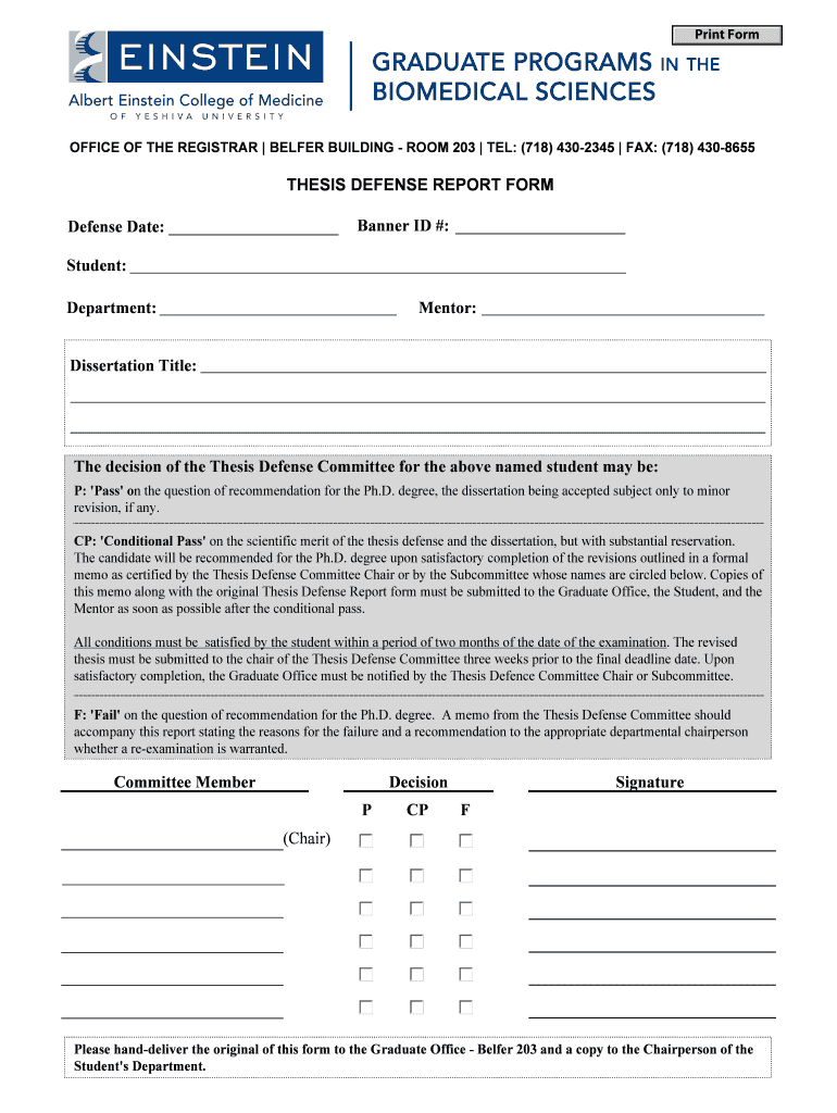 Ensure that all fields are accurately filled out, particularly signature lines. Double-check for any typos and confirm the defense date matches your scheduled presentation.