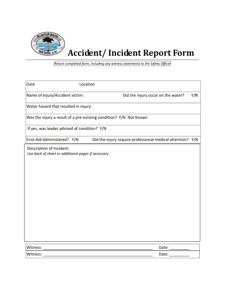 The Accident Incident Report Form includes several fillable fields and checkboxes that allow users to capture comprehensive details about the incident. Important sections within the form are dedicated to witness statements, which provide valuable third-party perspectives on the event.