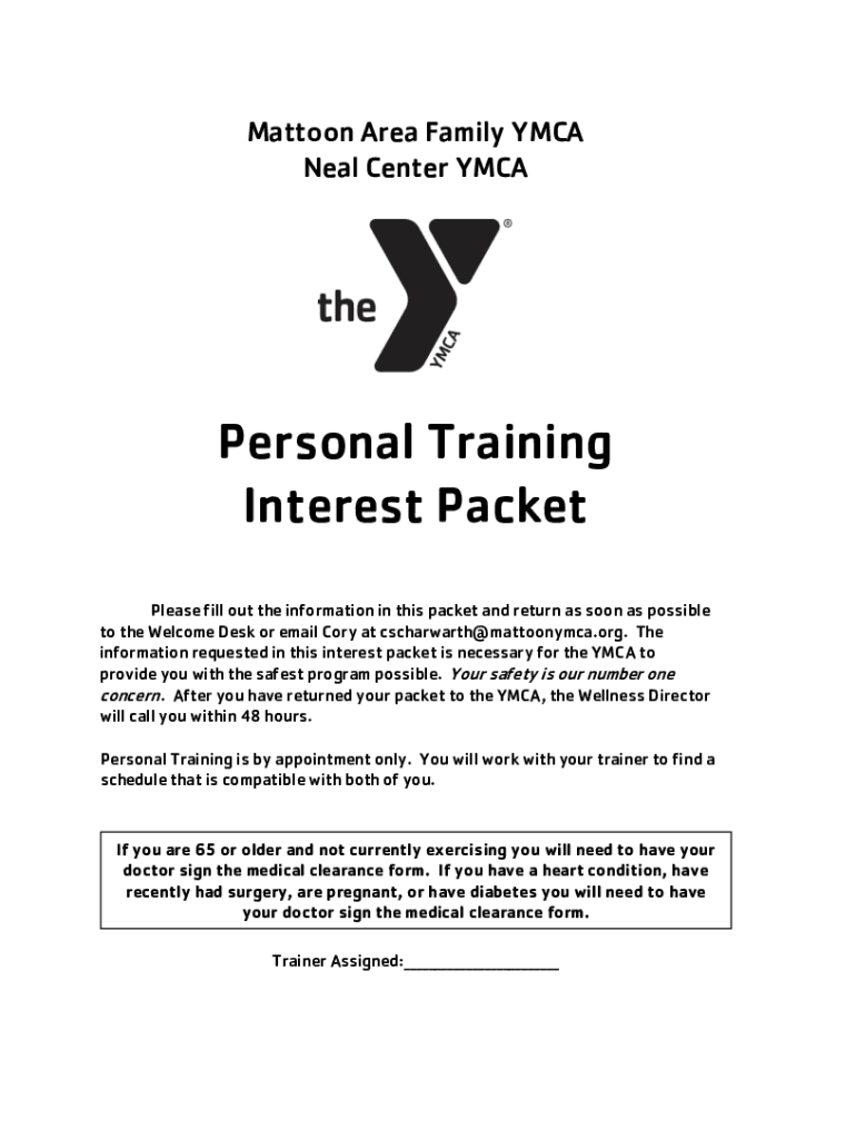 to the Welcome Desk or email Cory at cscharwarth@mattoonymca.org.