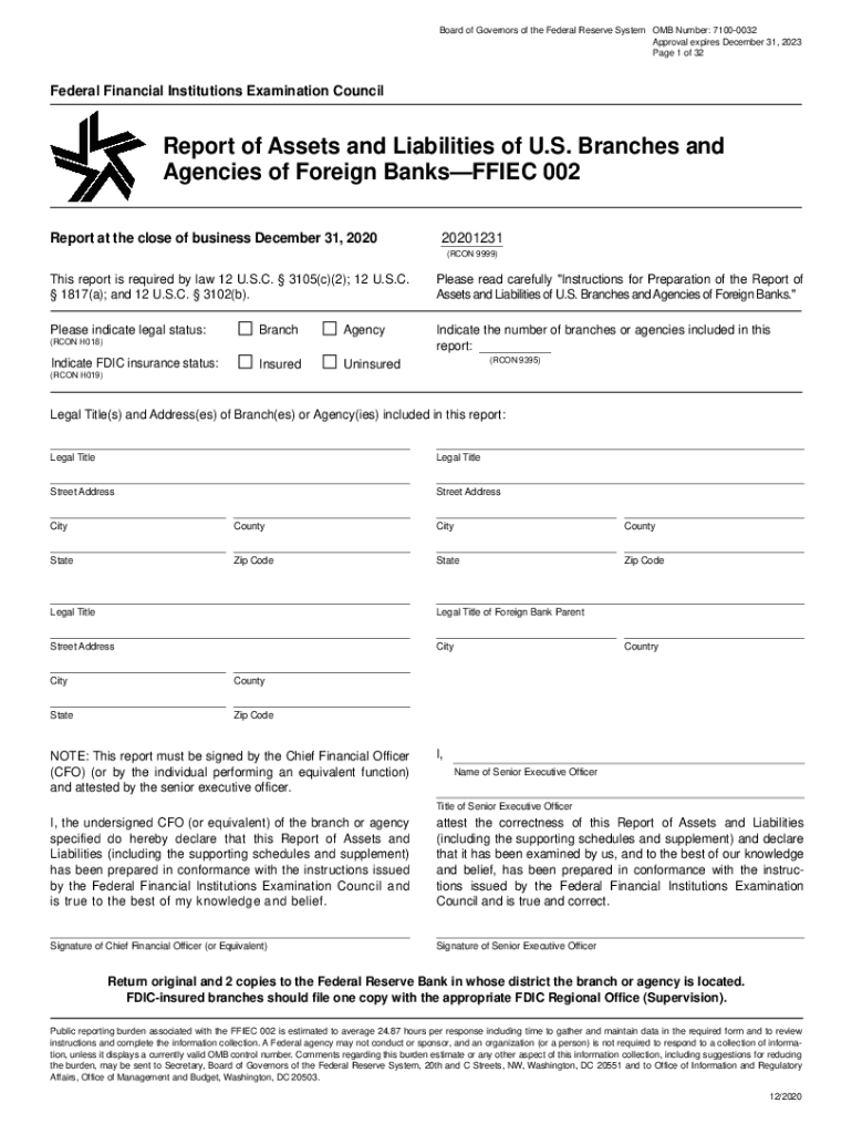 Get the free Report of Assets and Liabilities of US Branches and Agencies ... - ffiec