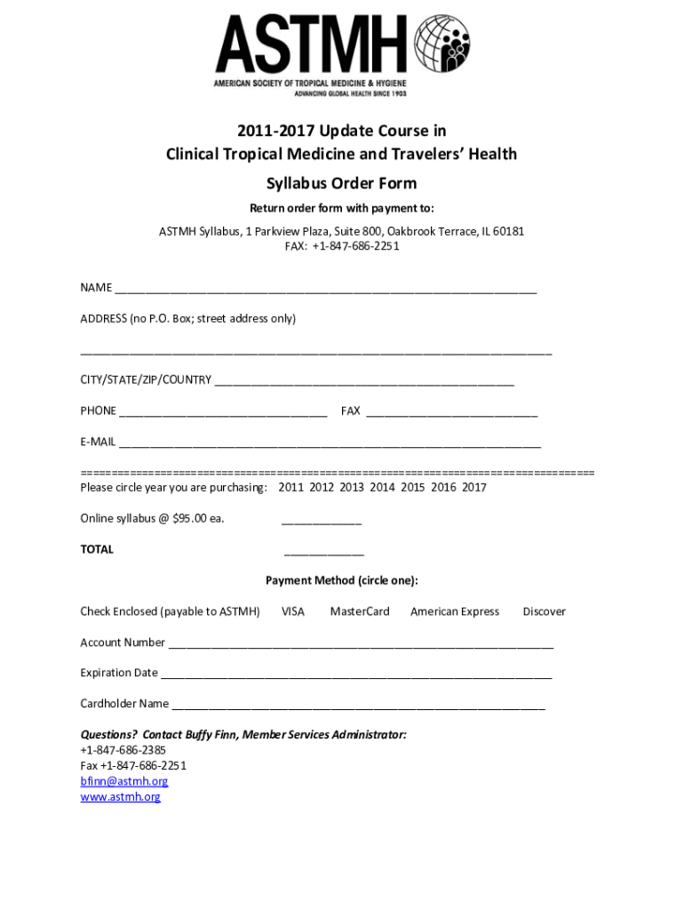 Get the free PDF Update Course Syllabus Order Form - ASTMH